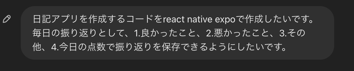 - ChatGPTにReact NativeのExpoで開発をしたいといえば、必要な環境構築は教えてくれます。