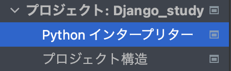 プロジェクト:プロジェクト名を選択し、Pythonインタープリターを選択
