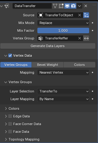 VertexGroup:転送元オブジェクトの、送りたいVertexGroup