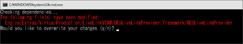 今回、図のファイルに更新が入っている旨のメッセージが出たので「y」を押しました。