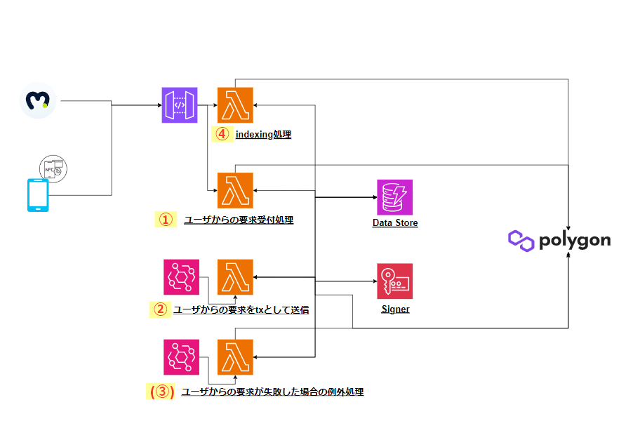 ユーザに見せる情報は決定的でありDynamoDBに書いているわけなので、それを以てindexing としても良いのですが、念のため Onchain の情報をverify します。また、送信したtx が実際に confirm されたかどうかもチェックした方が良いです。