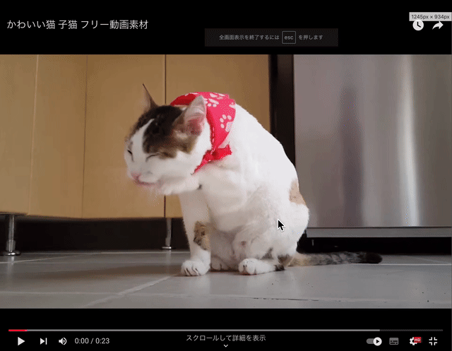 しかし Fullscreen API を用いて動画を全画面にした場合、通常はスクロール不可能なはずです。