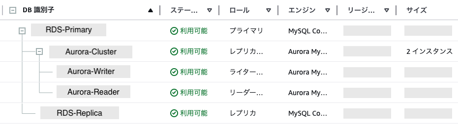 この時点での構成は以下のように RDS と Aurora が独立した状態です。
