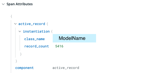 これを利用して以下のようなクエリを作成できます。 @active_record.instantiation.record_count:>=N という絞り込みによってN件以上のレコードをインスタンス化している箇所を検出できます。