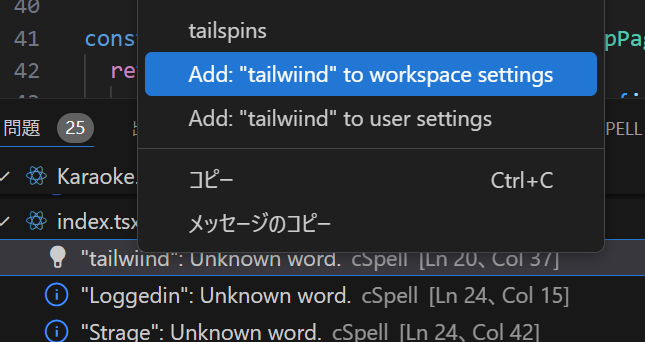 参考: 【VS Code】cSpell でスペルチェックの例外を設定する方法