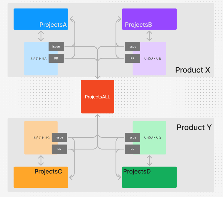 各リポジトリで作成されたissueやPRは、それぞれ用意されたProjectに紐づくようになっています。