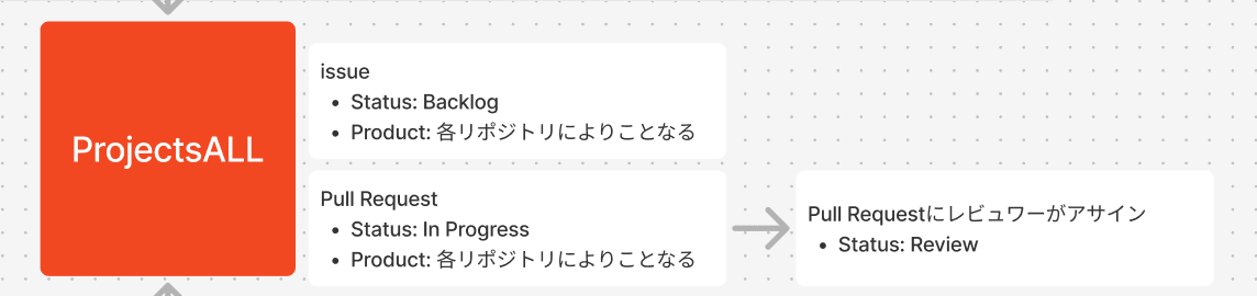 PRについては、作成時はIn ProgressでレビュワーをアサインしたらReviewに更新してほしいという要件があります。