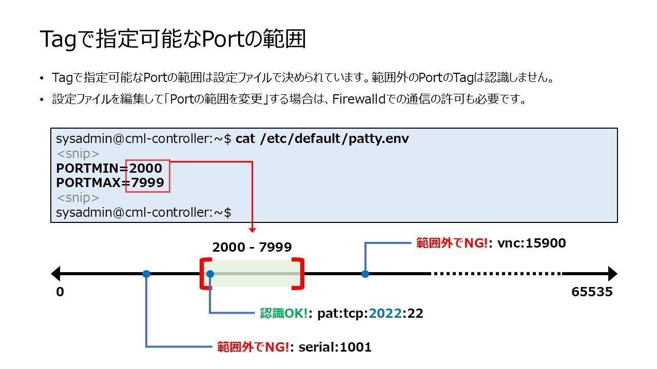 デフォルトではTCPの2000から7999の範囲を認識するため、実際の使用可能なPortは本例より余裕があります。