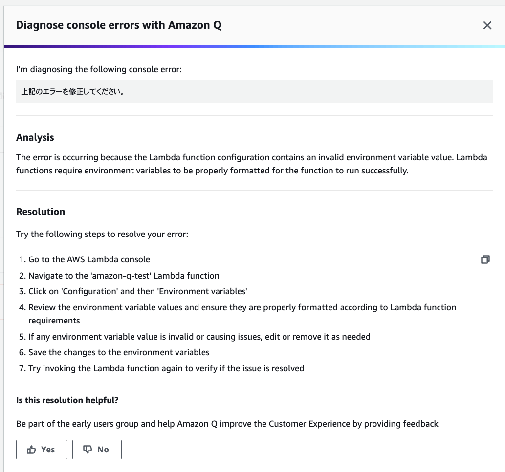 ユーザ目線ではなく Amazon Q 目線になっているのがちょっと気になります。