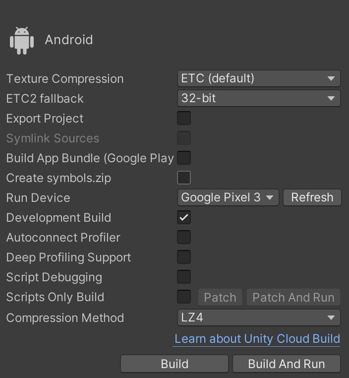 UnityでBuild and Runしたときにこのダイアログが出てビルドできない場合、USB接続したAndroidデバイスのUSBデバッグ許可ができていない可能性があります。