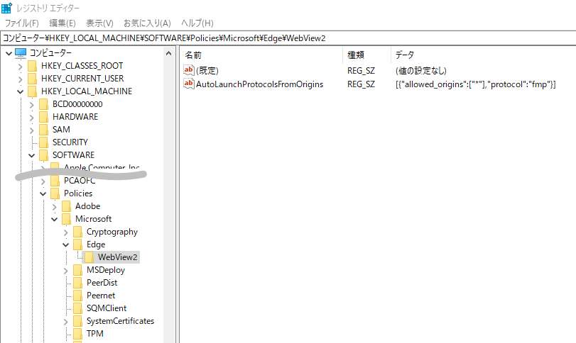 パス:HKEY_LOCAL_MACHINE\SOFTWARE\Policies\Microsoft\Edge\WebView2