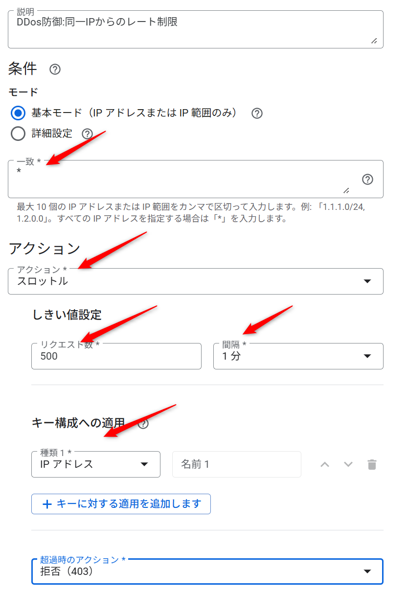 余談ですが、Cloud ArmorはWAF以外に特定のパスに通信できるIPを制限するなど様々なルールを適用できます。