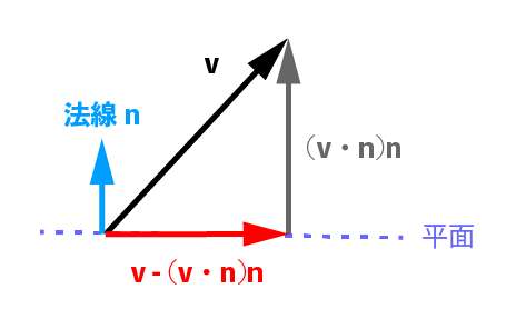 ベクトルvの平面への射影はv - (v・n)nで求まります。