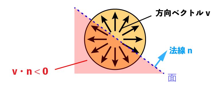 面の下を向いているかどうかは内積を利用することで判定できます。