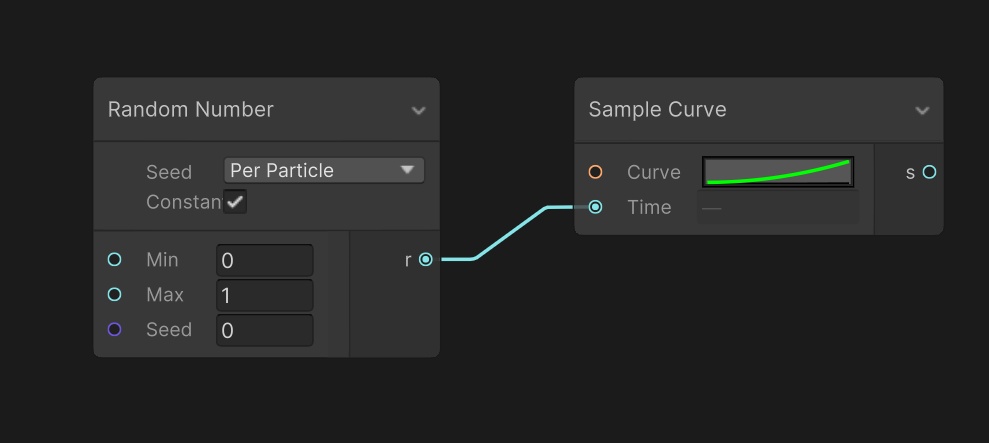 以下のようなノードを組むことで、パーティクル発生率を時間変化させることができます。