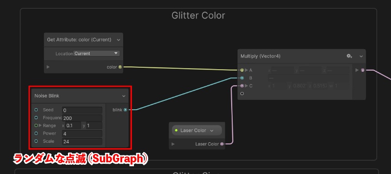 ランダムな点滅表現を入れるため、自作のSubgraph Operatorを利用しています。