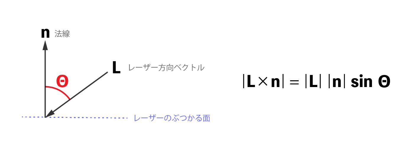 (レーザーが垂直に近づくとΘ=0に近づくので、外積のベクトル長もゼロに近づきます)