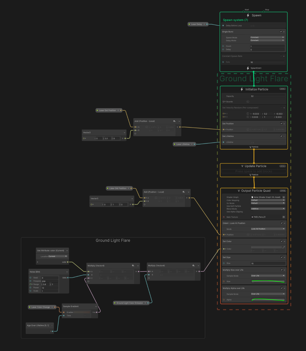 レーザー着弾位置のフレアの実装は以下のようになっています。