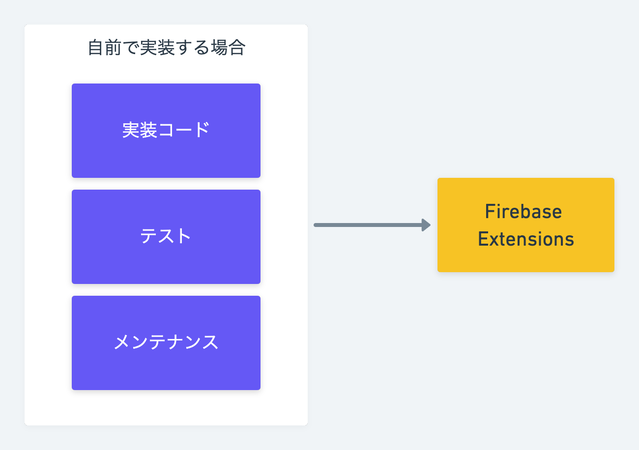 Firebase Extensionsを使うと、コードの調査、記述、デバッグを独自に行うことなく、アプリに拡張機能を追加できます。