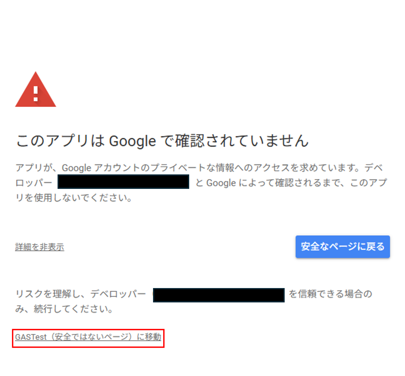 Googleで確認取れないよ、ホントに大丈夫?と聞かれますので添付図のようにクリック。