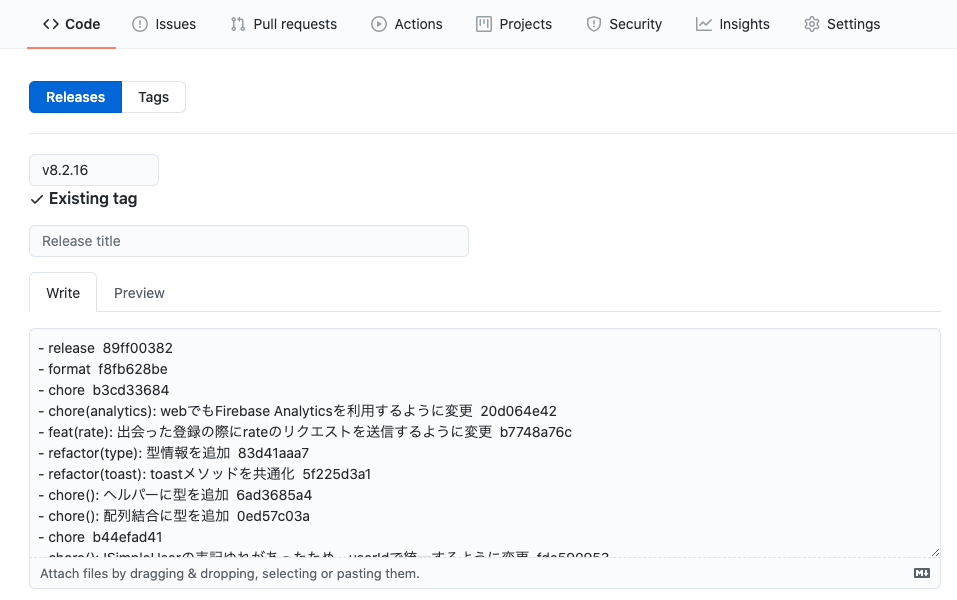 - 最後のGitHubのタグからここまでのGitのコミット履歴を一覧にしてくれる