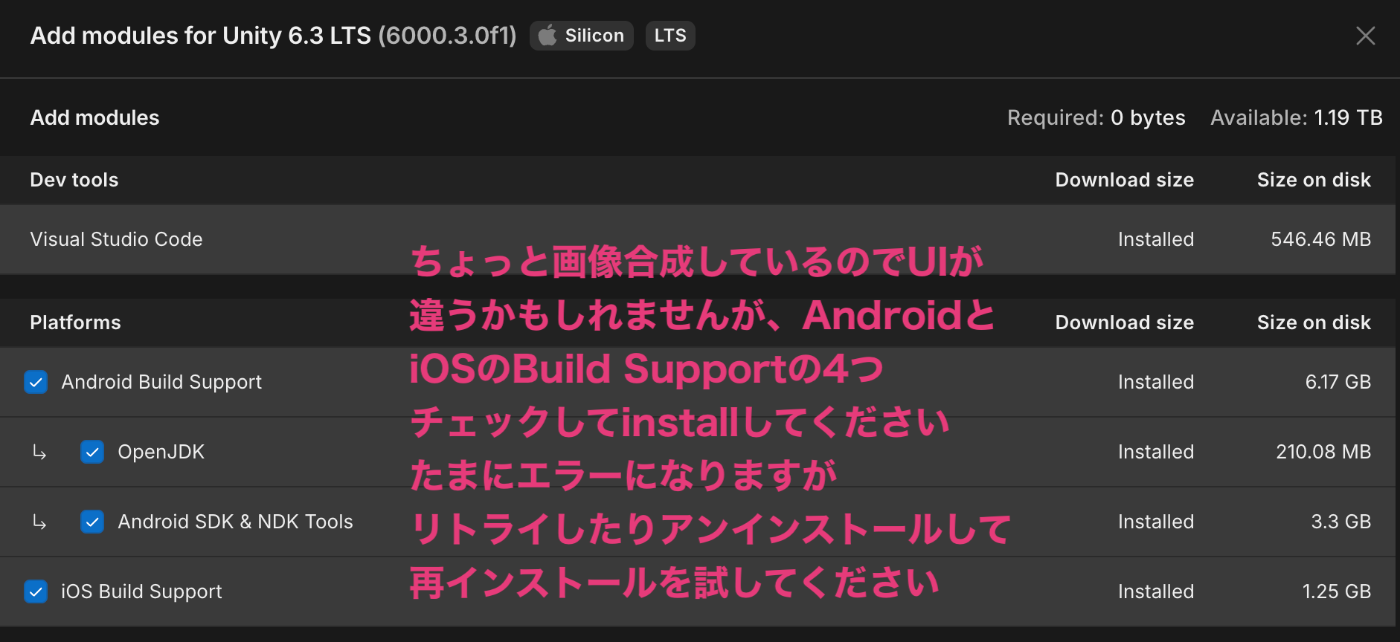 install時、または後からAdd ModuleでAndroid Build Supportを追加