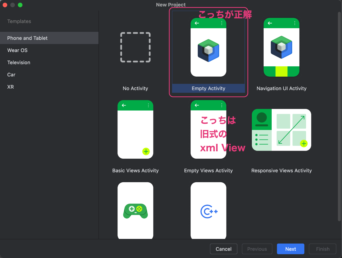 Compose UIと従来のxml Viewの共存には、親子関係によって2種類の方法があります。