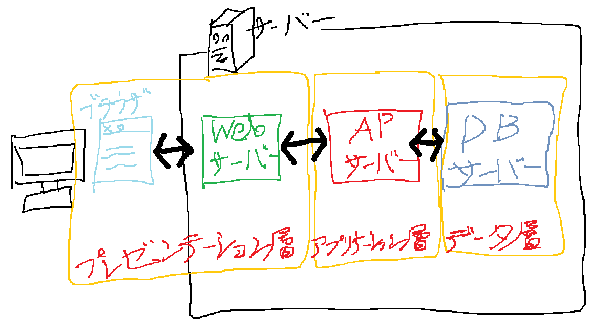 【初学者によるまとめ】この一冊で全部わかるWeb技術の基本 「Chapter 5」>「01 Webアプリケーションの3層構造」