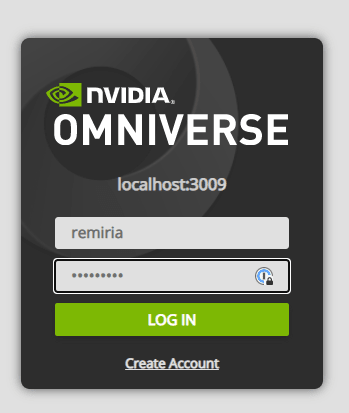 Omniverseフォルダの中に入ると、指定したサーバーへのログイン画面が出てくるので