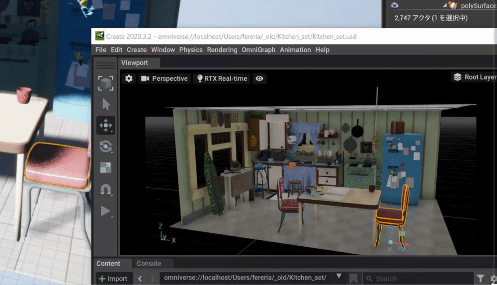 同じUSDをCreate側で開いて操作してみると、Syncできているのがわかります。