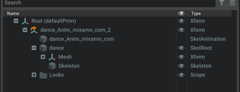 ロードはできましたが、アウトライナに表示されるのはUSDのシーングラフでUSDでのPrimが