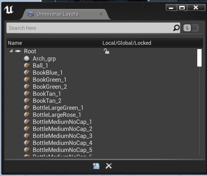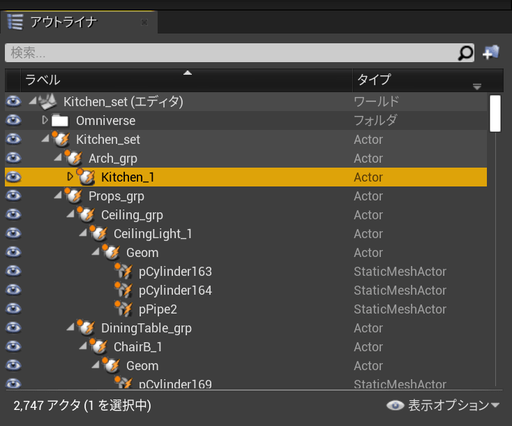 現在ロードしているアセットのレイヤー、すなわちUSDファイルの一覧が