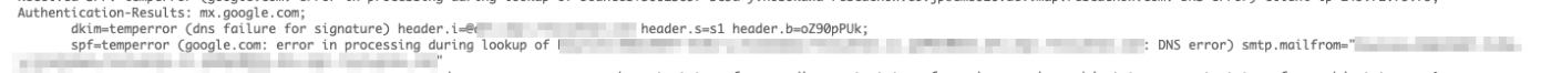 ということで、開発中のサービスから会社のメールアドレス宛に送信されたメールのヘッダを改めて確認してみると、SPF: TEMPERROR