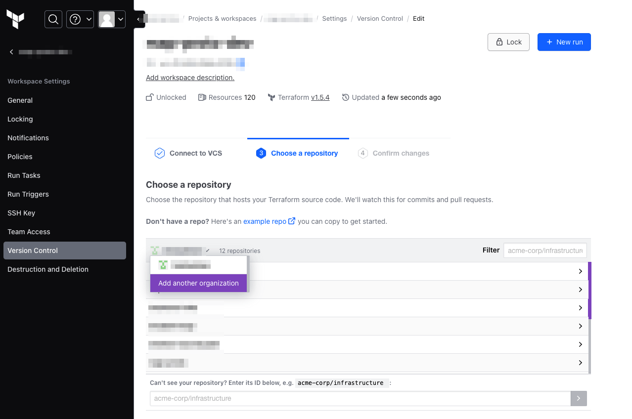 Terraform Cloudのワークスペースに紐づけるGitHubリポジトリの変更方法:紐づけたいリポジトリが見つからない場合