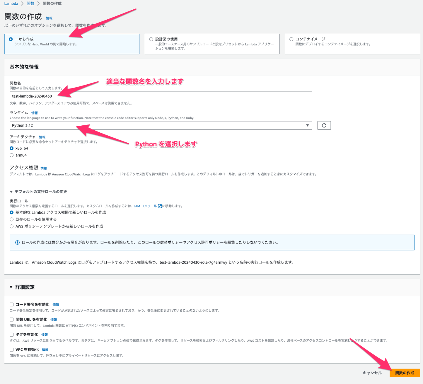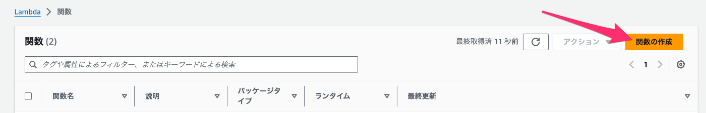 次は Lambda を作成します。
