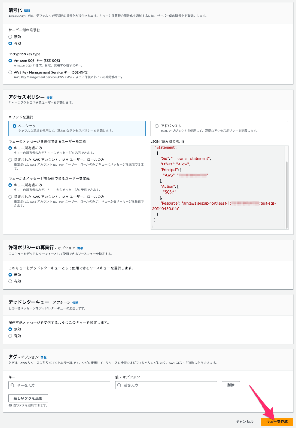 SQS の設定を行います。