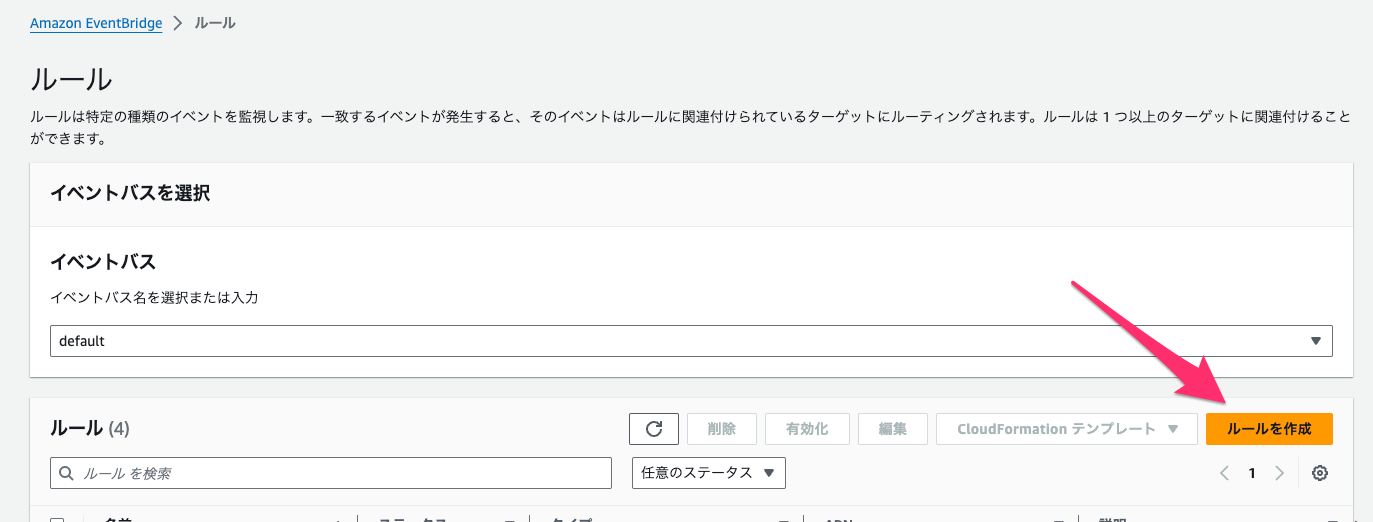 今回は default のイベントバスでルールを作成していきます。