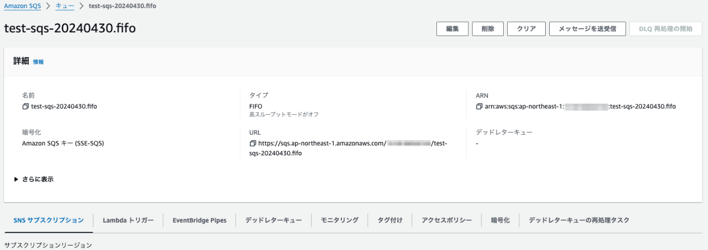 それではここで一旦 SQS からテストでメッセージを送ってみましょう。
