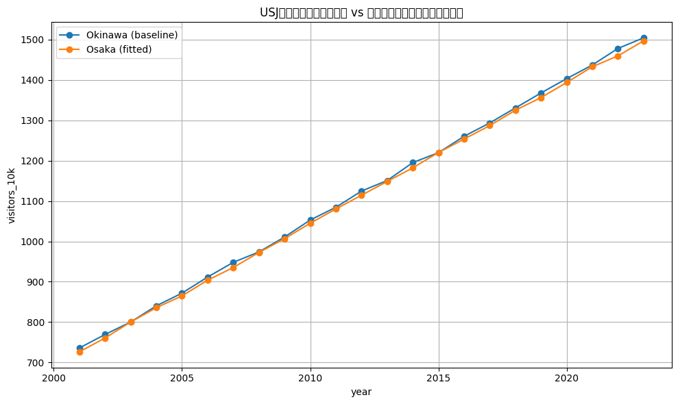 大阪・沖縄(名護)の天候の時系列データや、USJ来場者数の時系列データをもとに、ジャングリア沖縄(沖縄にUSJと同規模のテーマパークがあった場合)の来場者数予測を分析しました。