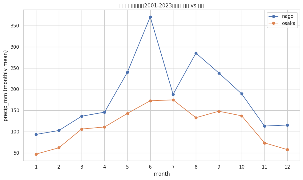 osaka_path = "/content/大阪天候データ(2001~2023/1月~12月の月別降水量).csv"