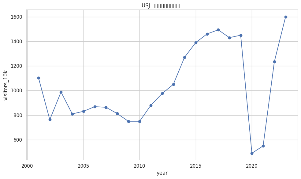 比較対象として、国内最大級のテーマパークであるUSJ(ユニバーサルスタジオジャパン)の来場者動向をパーク運営や投資判断における重要指標とします。
