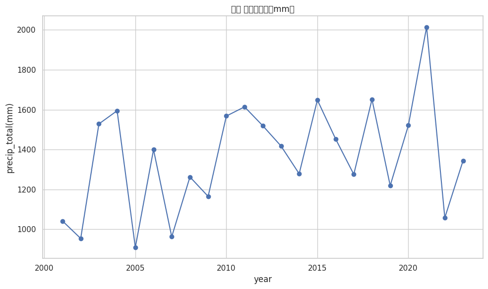 may_jun = df[df["month"].isin([5, 6])].groupby("year")["precip_mm"].sum()