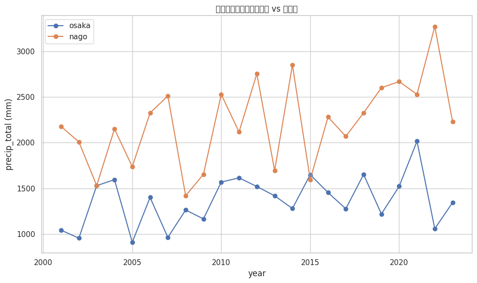 - 沖縄(名護)は大阪と比較して年間雨量が大幅に多く、季節(梅雨・台風など)によるリスクが顕著に表れる。