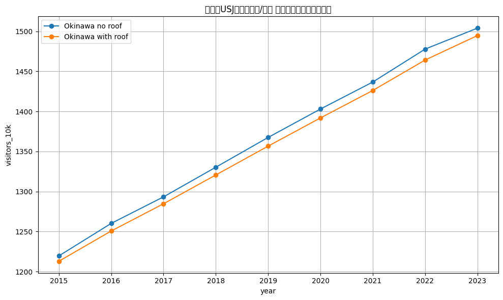 === 沖縄版USJ:屋根あり vs なし(万人差分) ===