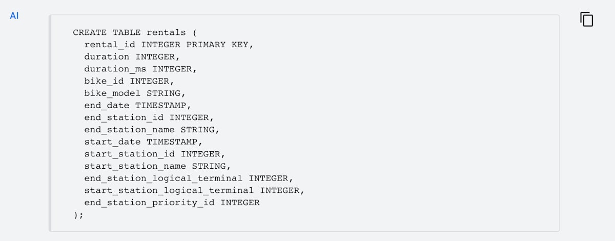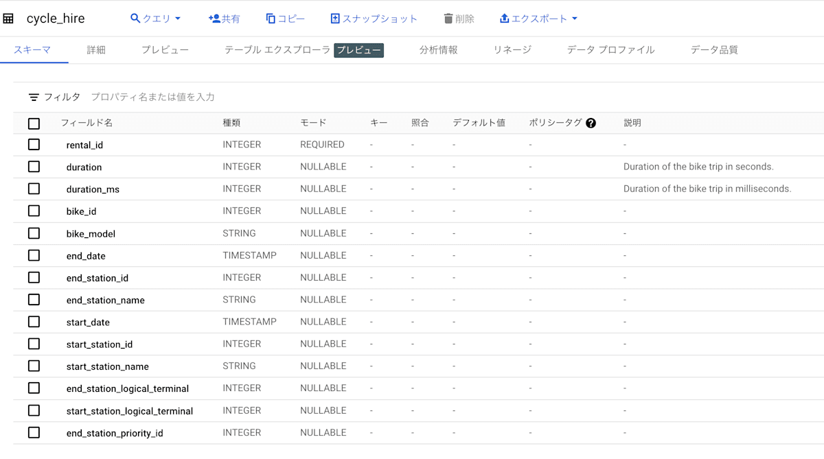 start_station_name,start_date) とそのデータ型を把握しました。 -
