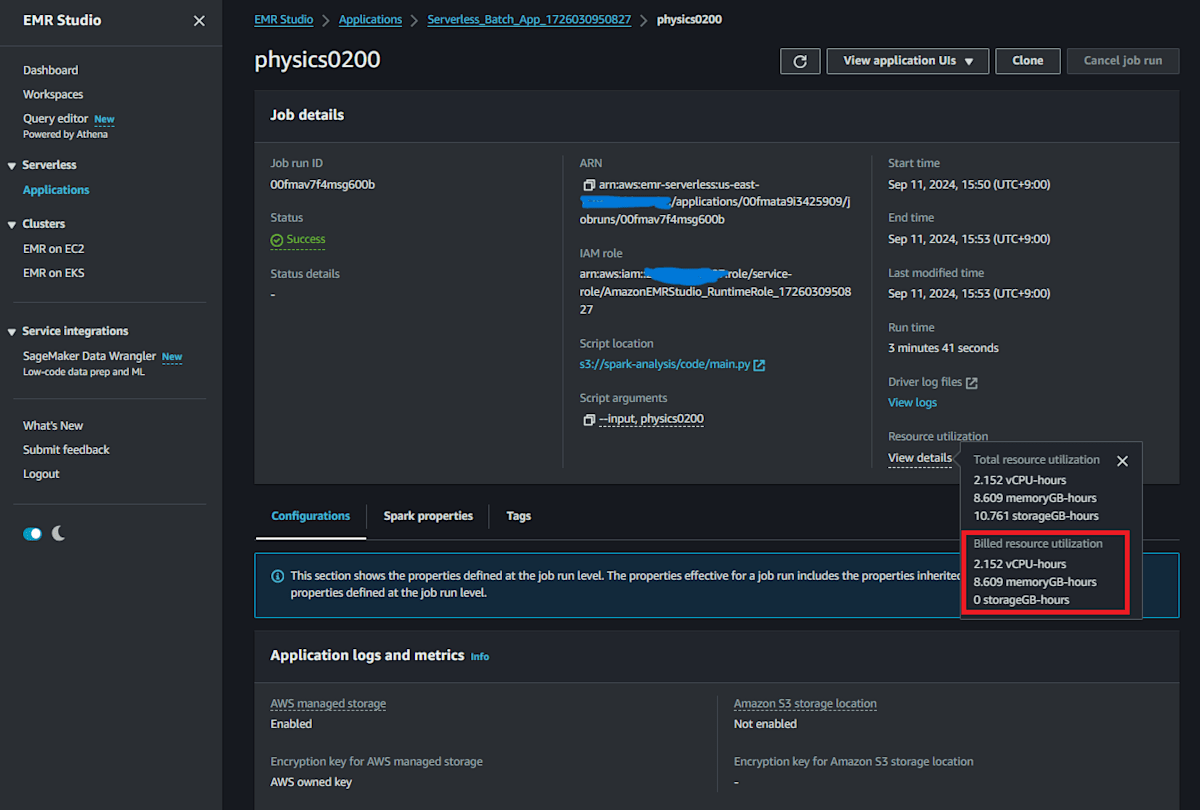 --execution-role-arn arn:aws:iam::アカウントid:role/service-role/AmazonEMRStudio_RuntimeRole_ロールid" \