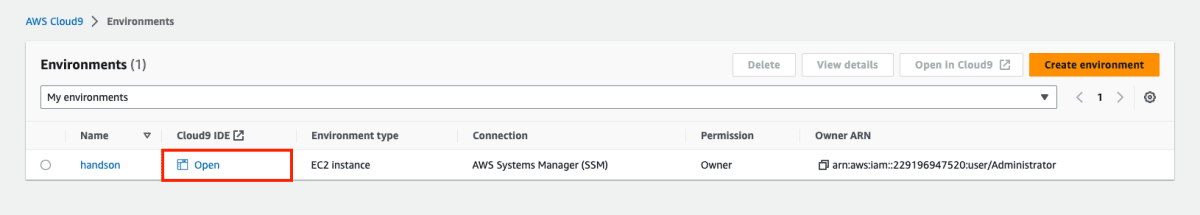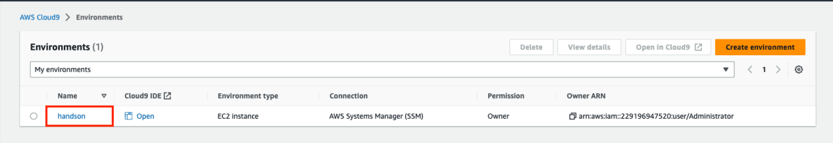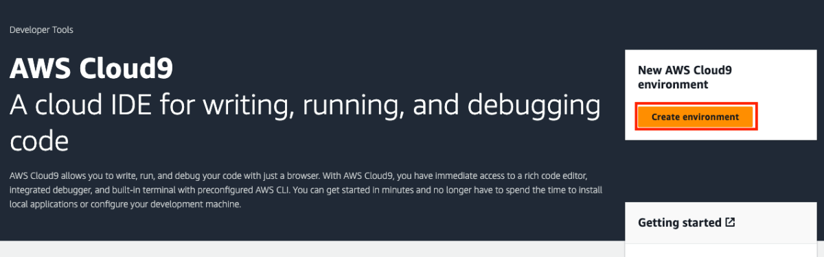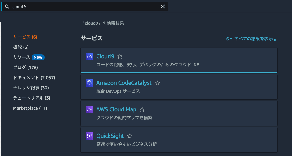 まずは、環境構築です。AWSコンソールからCloud9にアクセスします。