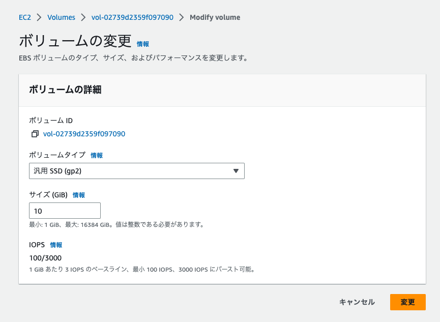 デフォルトのままでは、EBS ボリュームが不足してしまう可能性があるので、EBS ボリュームの引き上げを行います。