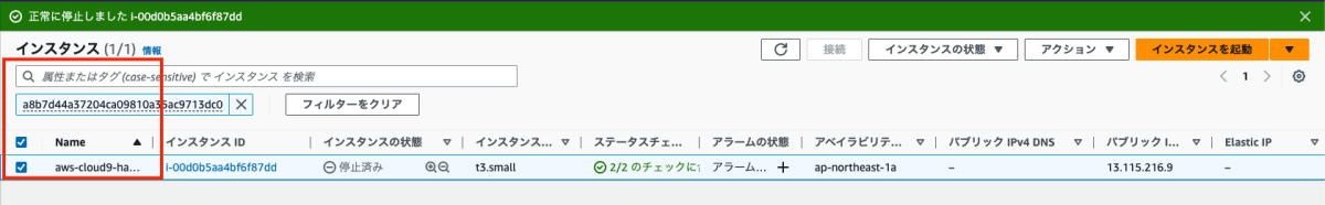 EC2 インスタンスが停止できました。