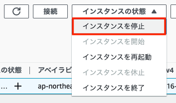 インスタンスの状態 > インスタンスを停止を選択します。